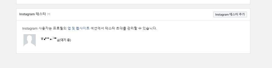 11. 클릭시 해당 화면으로 이동되며 인스타 테스터추가 클릭하여 자신이 가져올 인스타 계정 ID 입력 (대기중으로 뜨면 끝)