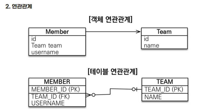객체는 참조를 사용하며 테이블은 외래키를 사용한다.