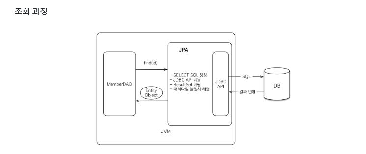 - 내부적으론 쿼리를 생성해서 DB를 조작하나 이것은 JPA가 해주는영역이다.