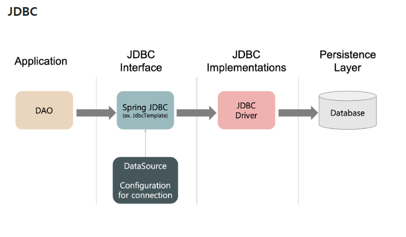 JDBC는 SQL로 DB에 직접 접근할수 있도록자바에서 제공하는 API이며 Mybatis, jdbcTemplate이 그 예시다.