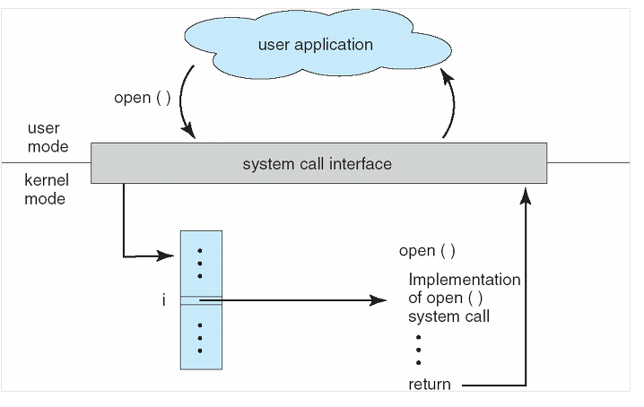 사용자모드의 프로세스가 SW인터럽트(Trap이라 표현한다)를 통하여 커널의 기능을 이용하기 위하여 프로세스 제어, 파일 조작, 자원관리 등의 작업을 지원한다